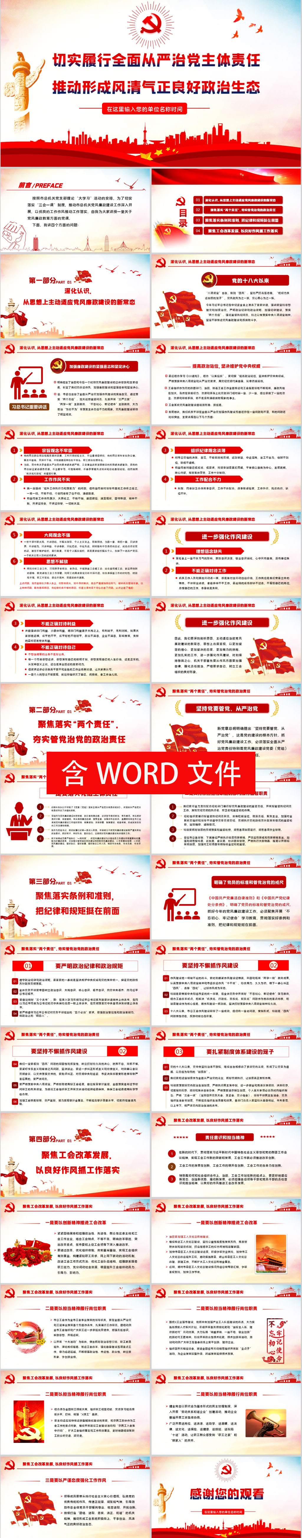 落实全面从严治党主体责任党课PPT模板(内含WORD演讲稿)