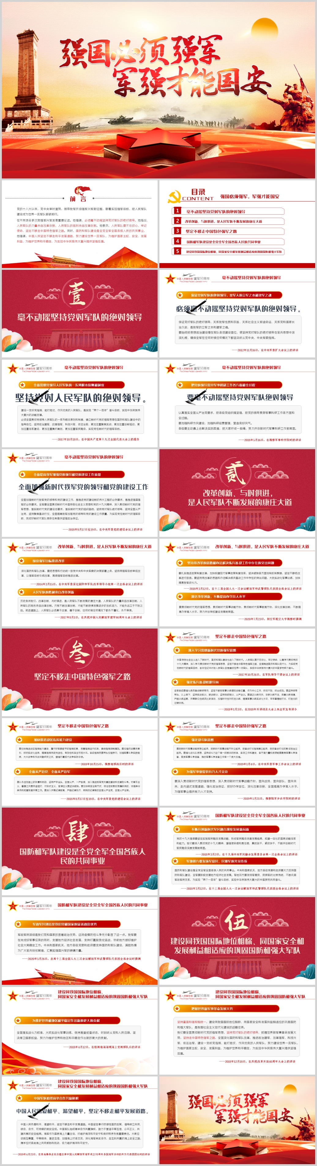 八一建军节国防教育强国必须强军军强才能国安军课党课PPT模板(内含WORD演讲