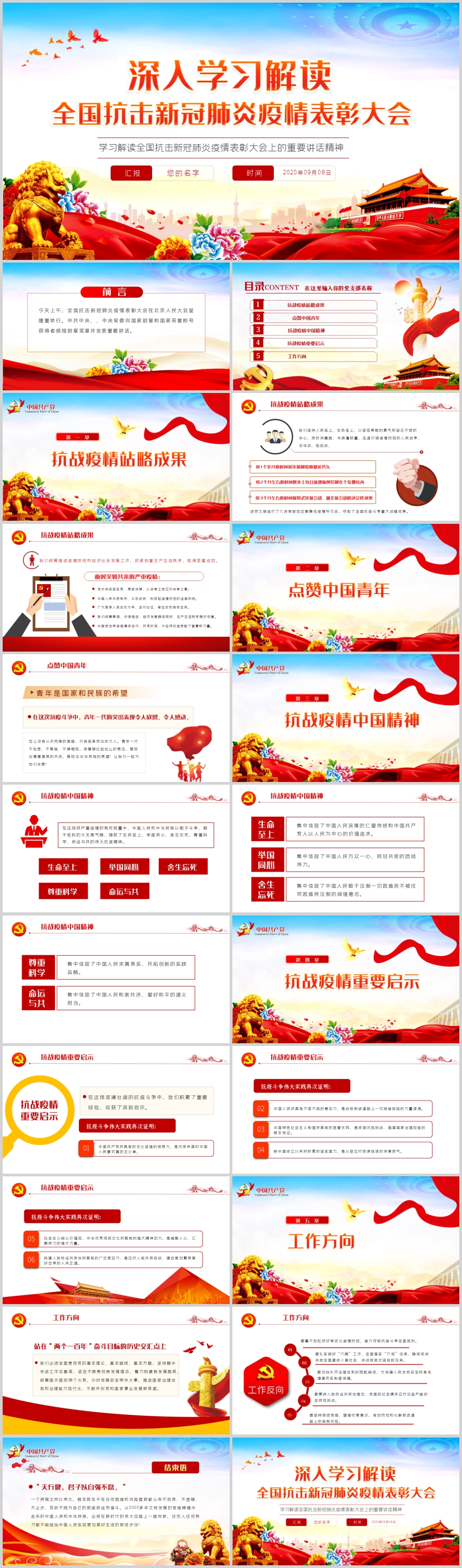 学习全国抗击新冠肺炎疫情表彰大会讲话PPT(内含WORD演讲稿)