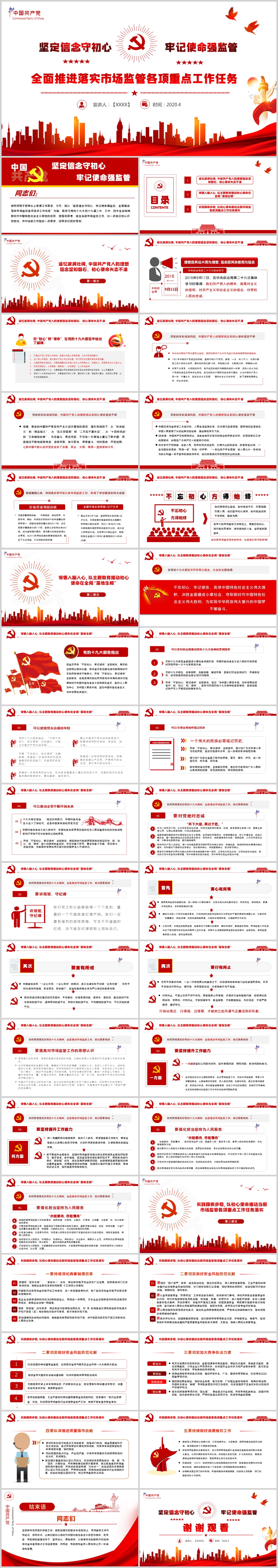 坚定信念守初心牢记使命强监管党建党课PPT(内含WORD演讲稿)