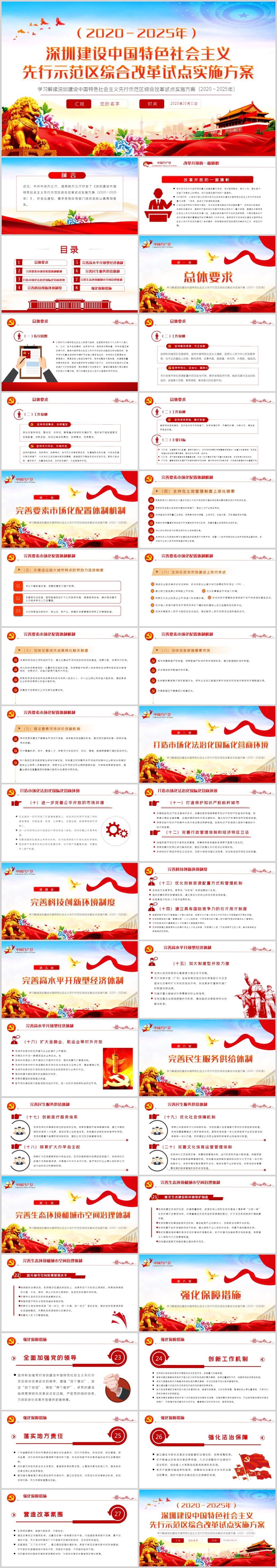 深圳建设先行示范区综合改革试点实施方案PPT模板(内含WORD演讲稿)