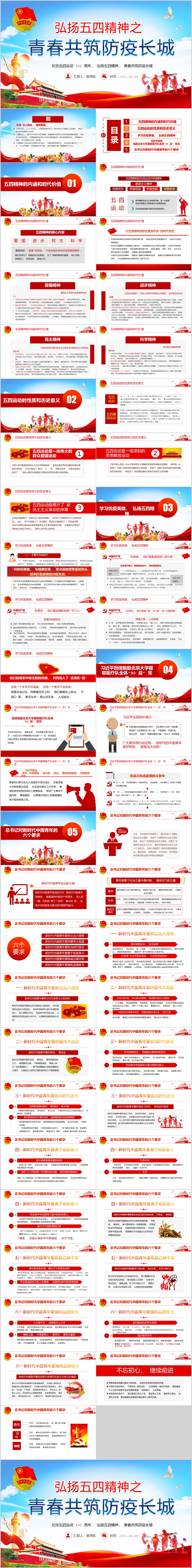 弘扬五四精神之青春共筑防疫长城党建党课PPT(内含WORD演讲稿)