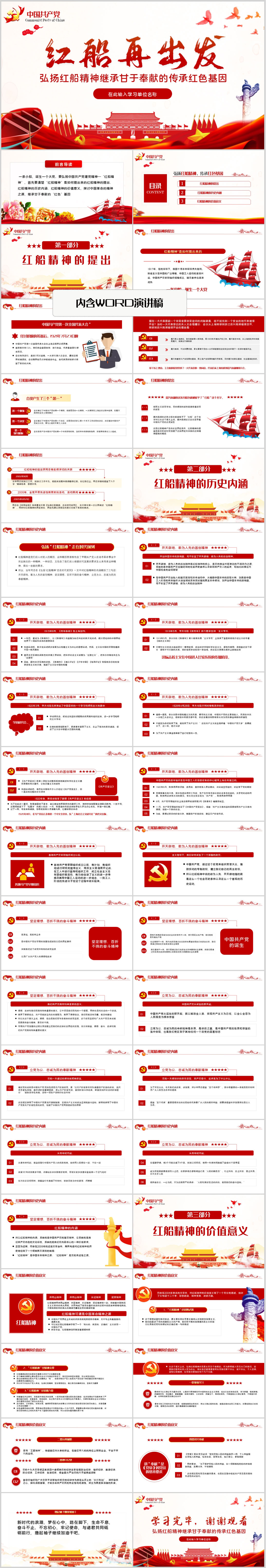 学习不忘初心弘扬红船精神传承红色基因专题党课PPT模板(内含WORD演讲稿)