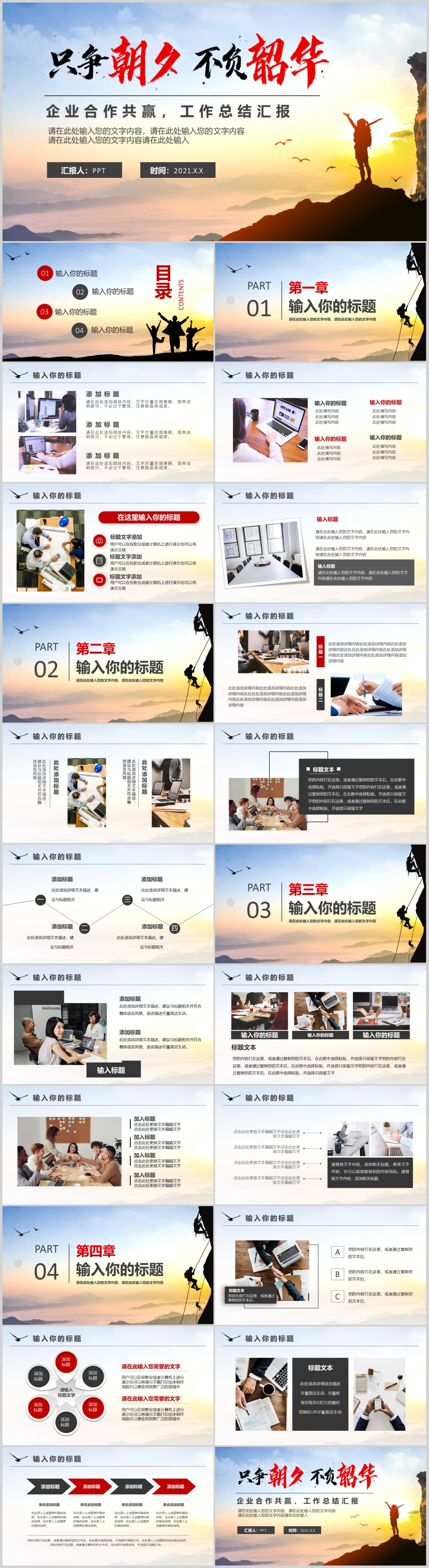 只争朝夕不负韶华年中精美大气创意总结计划汇报ppt模板
