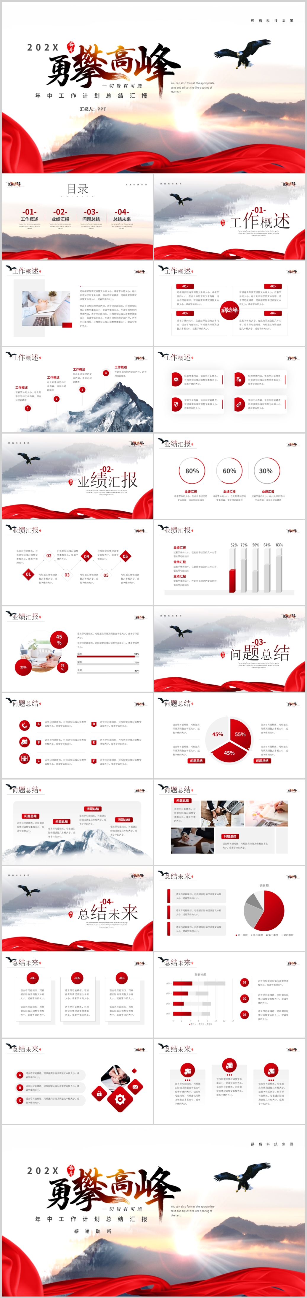 红色大气上半年工作总结汇报新年计划PPT模板