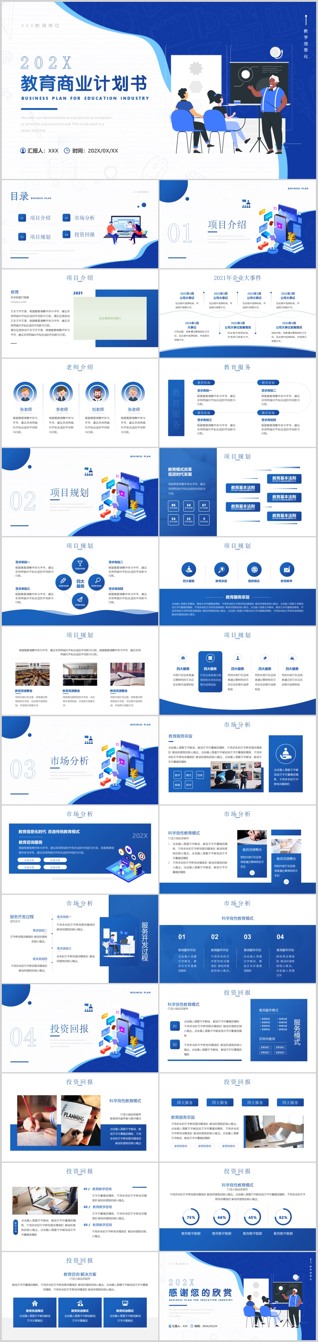蓝色大气稳重内容实用教育商业计划书ppt模板