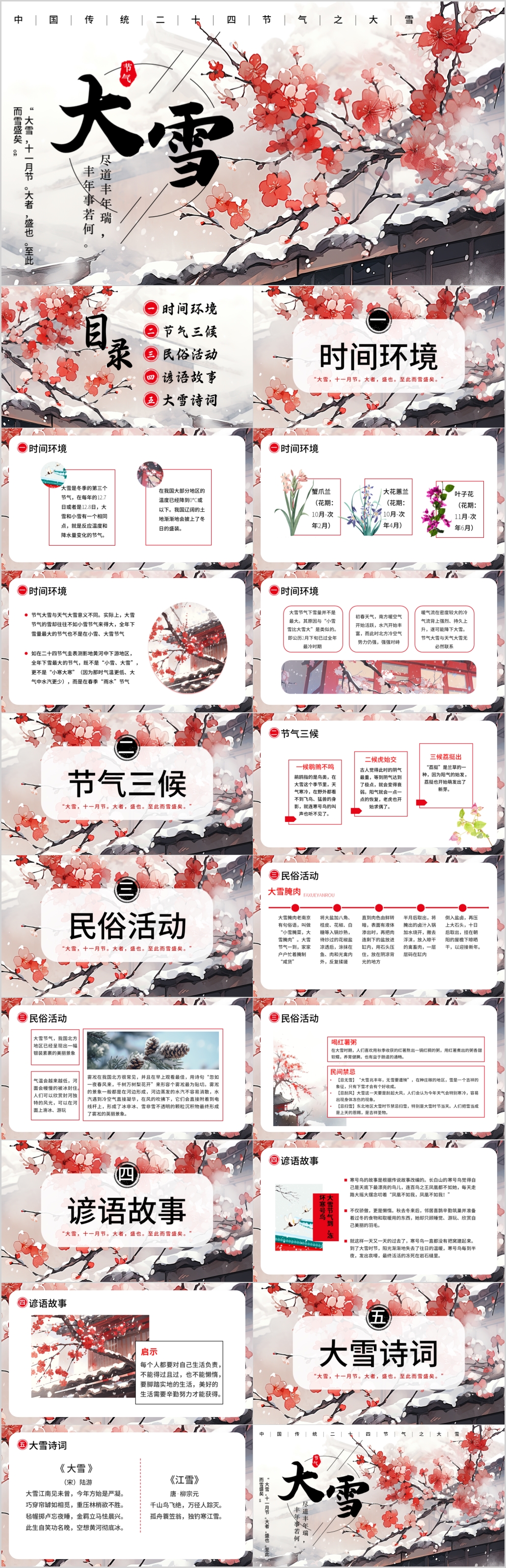 冬季二十四节气大雪传统节日介绍课件ppt模板