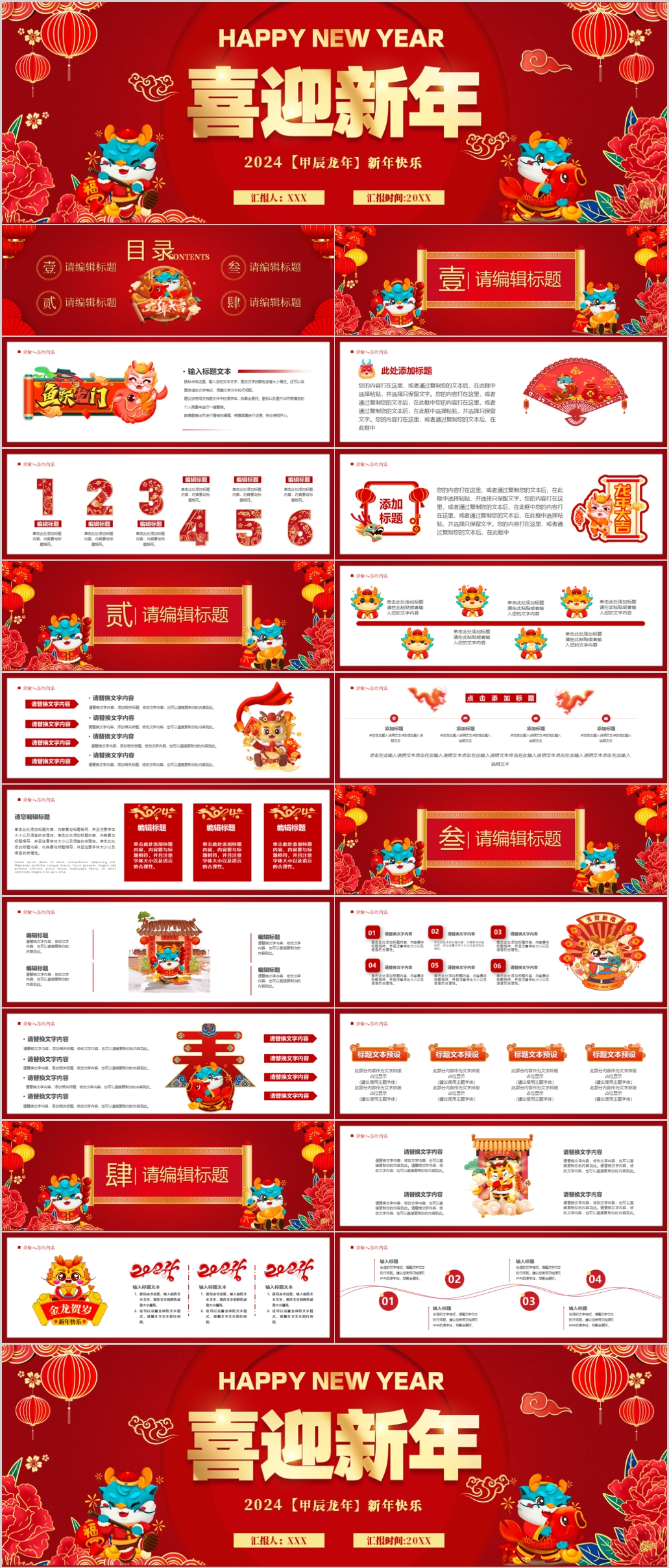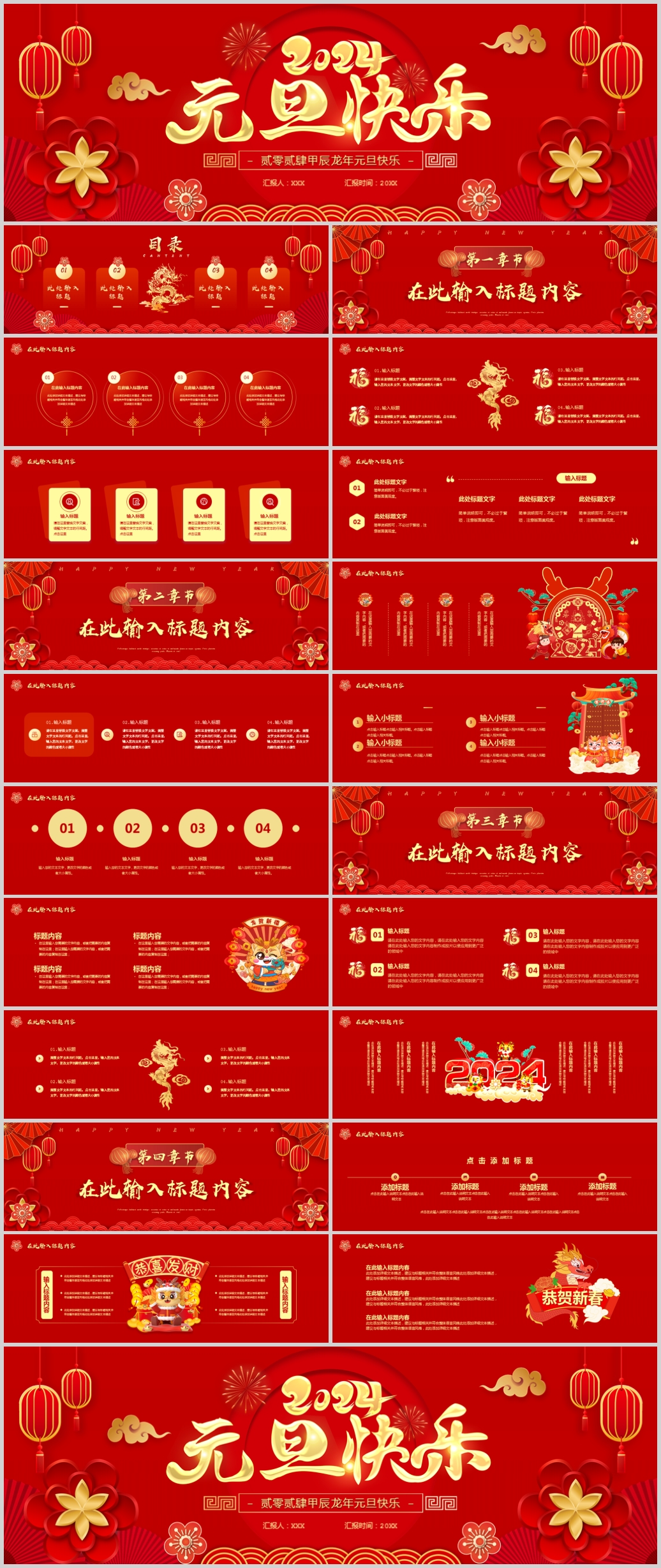 2024龙年吉祥新年元旦春节通用ppt模板