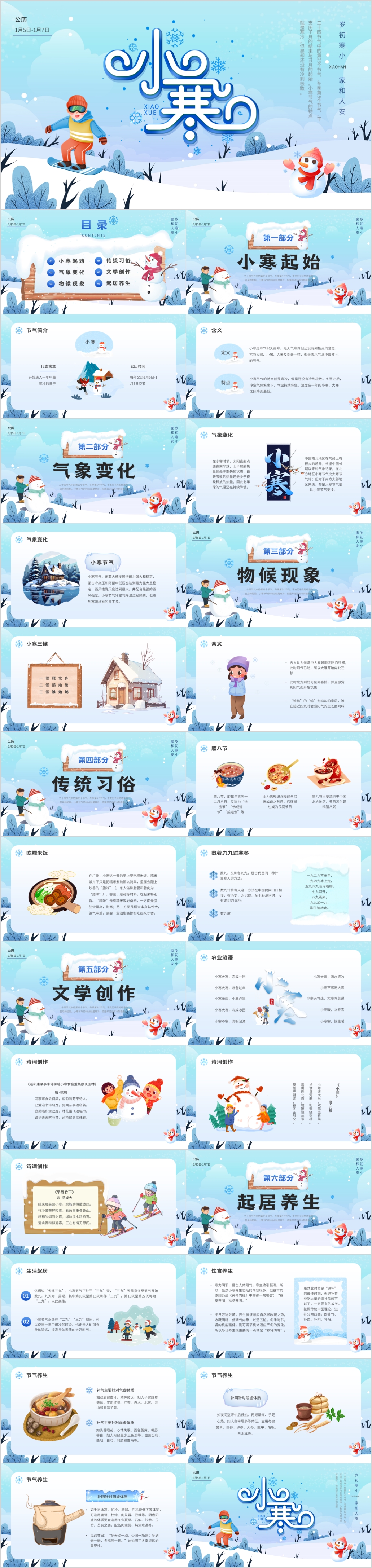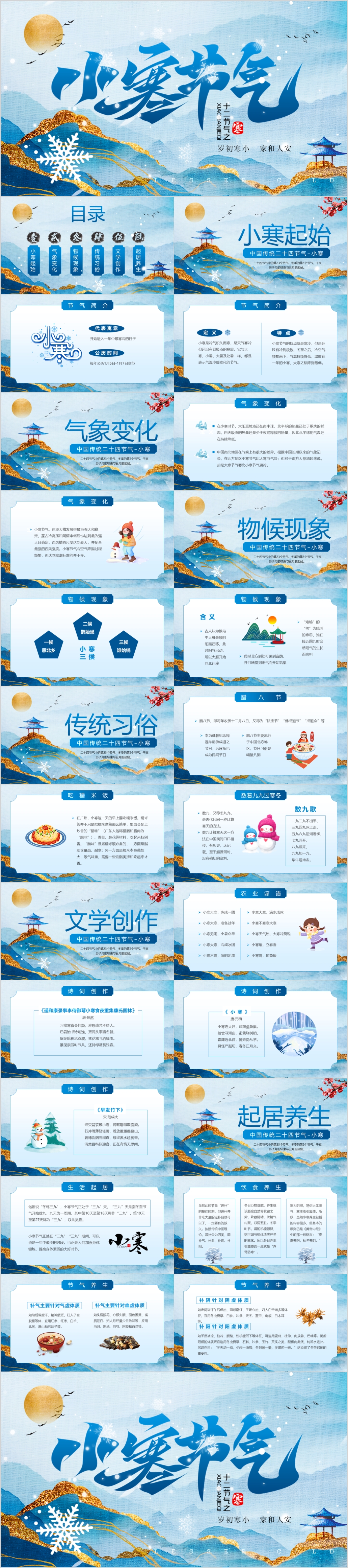 中国传统二十四节气小寒节气内容介绍PPT模板