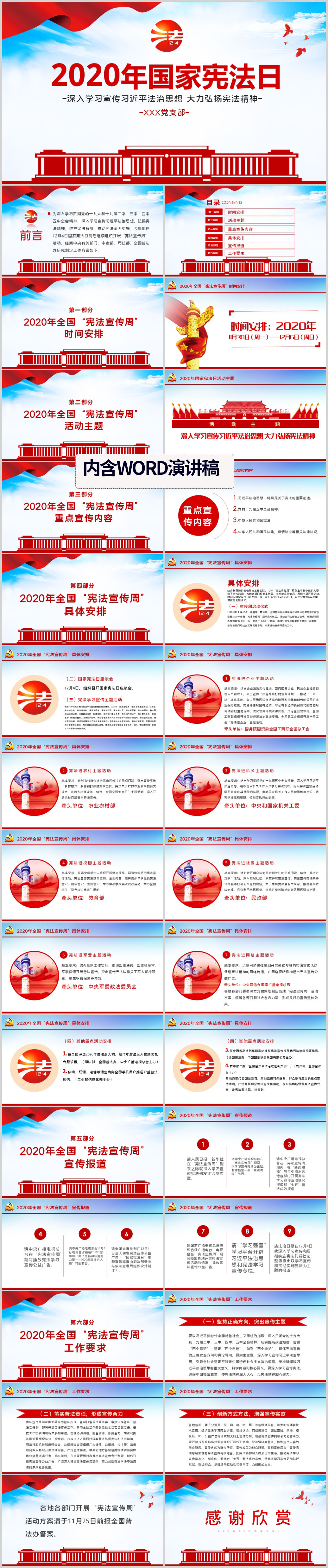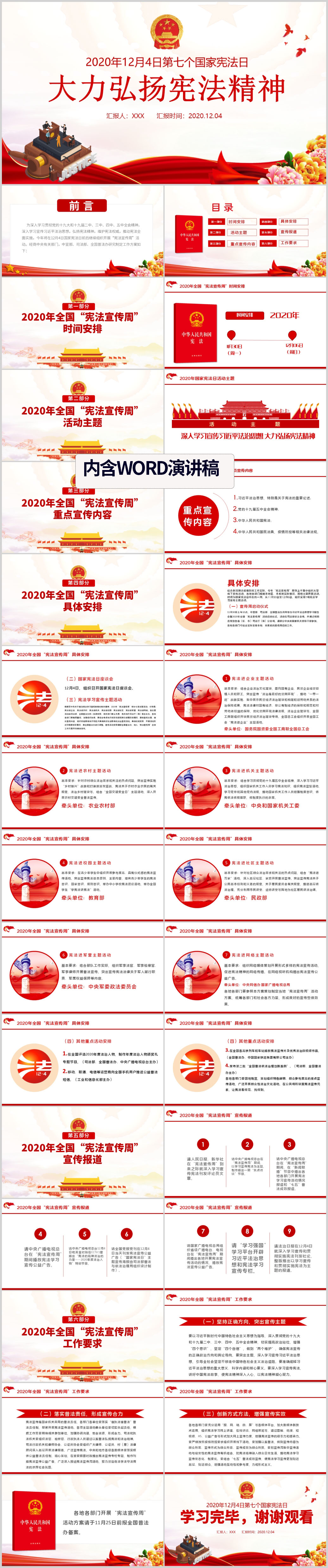 2020国家宪法日全国法制宣传日宪法宣传周PPT模板(内含WORD演讲稿)
