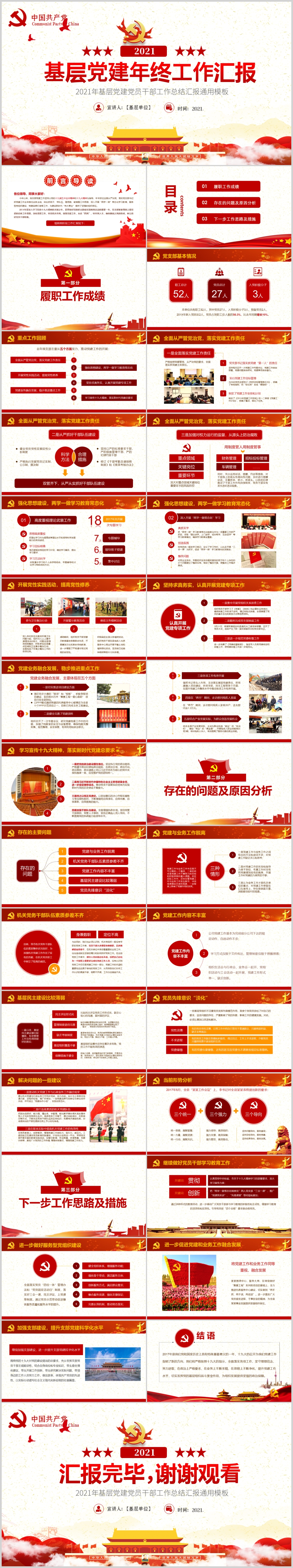 2021年基层党委党支部党建年终总结工作计划通用PPT模板