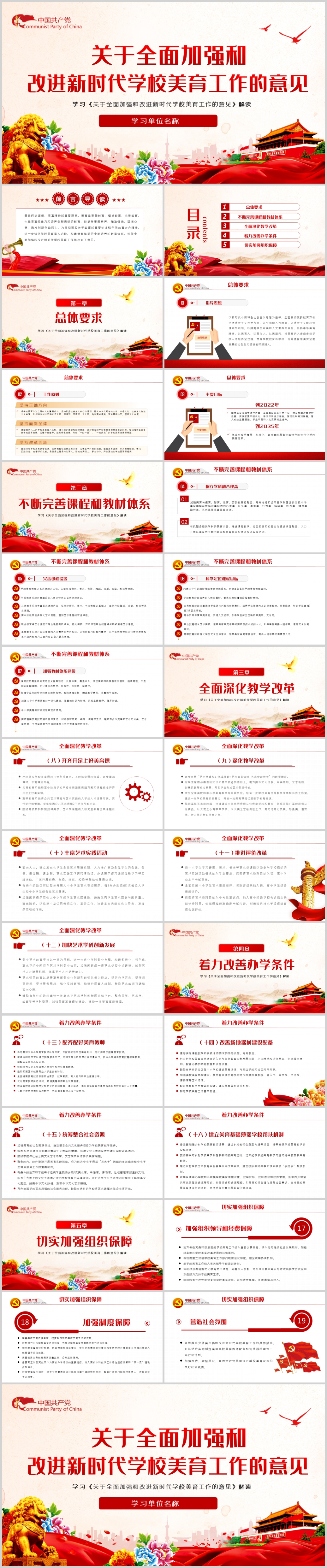 关于全面加强和改进新时代学校美育工作意见PPT(内含WORD演讲稿)