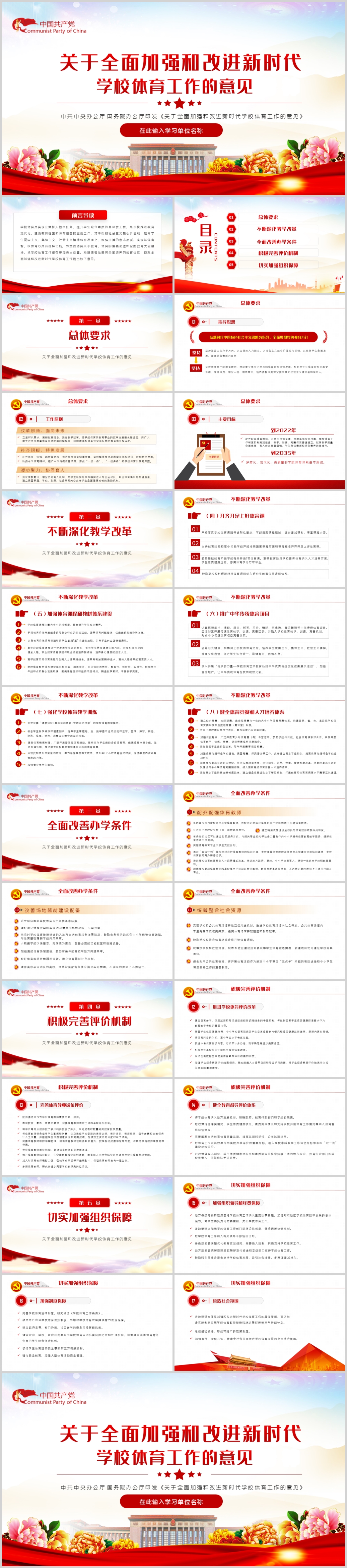 关于全面加强和改进新时代学校体育工作意见PPT模板(内含WORD演讲稿)