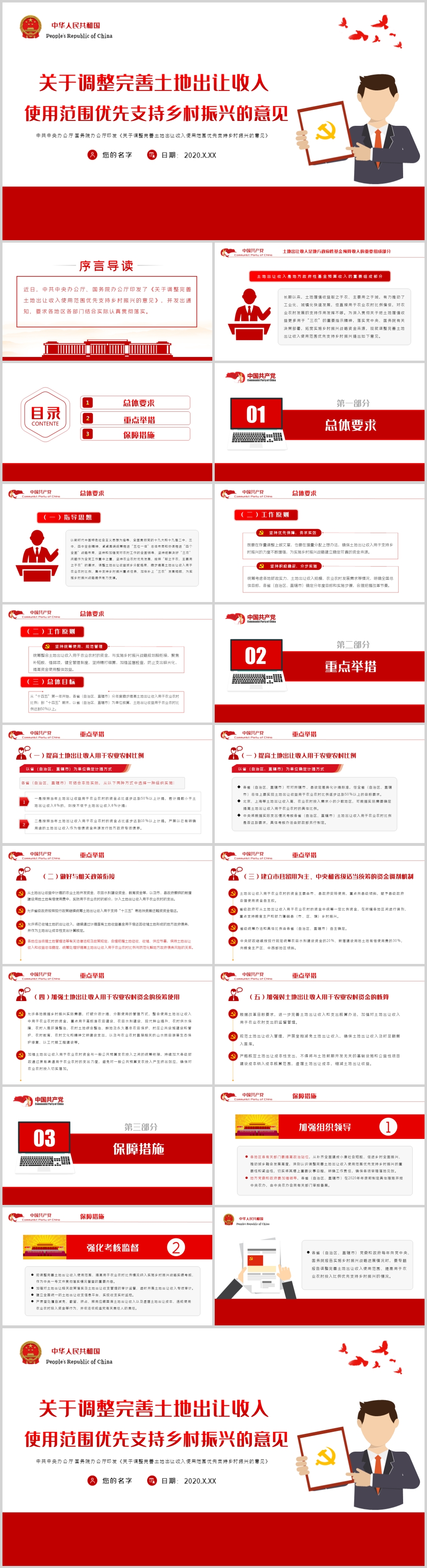 调整完善土地出让收入使用范围优先支持乡村振兴党建PPT(内含WORD演讲稿)