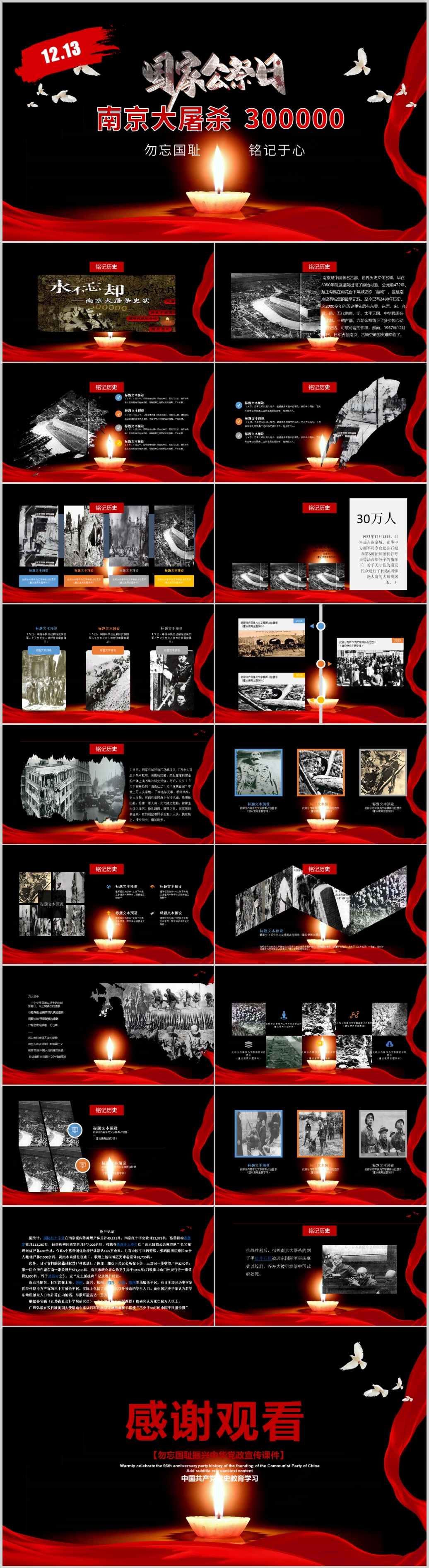学习国家公祭日南京大屠杀纪念党课PPT模板