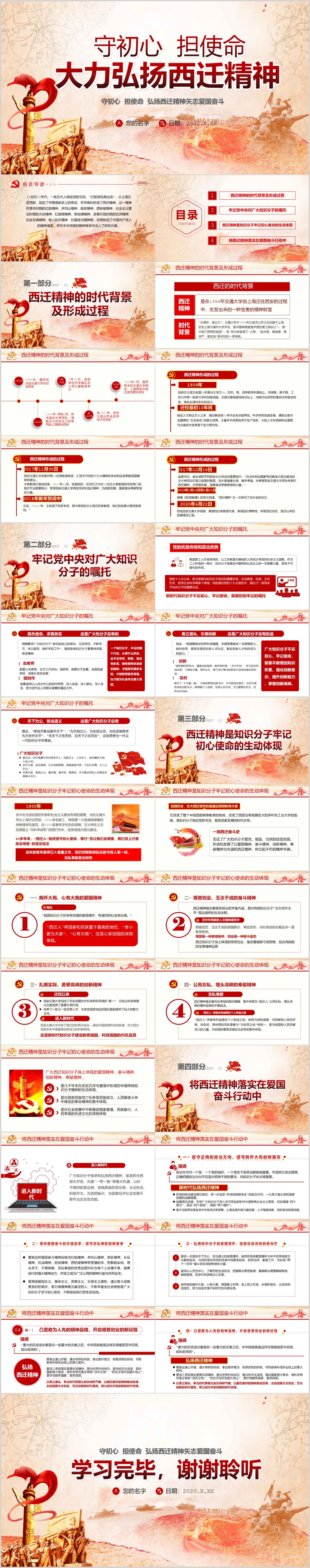 党建党课大力弘扬西迁精神爱国奋斗PPT(内含WORD演讲稿)