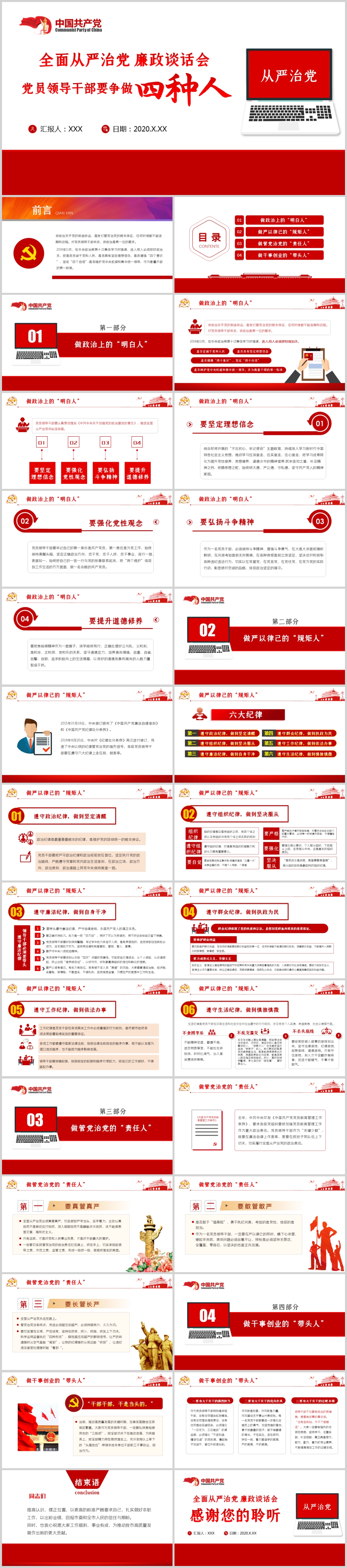 党员领导干部要争做四种人全面从严治党课ppt(内含WORD演讲稿)