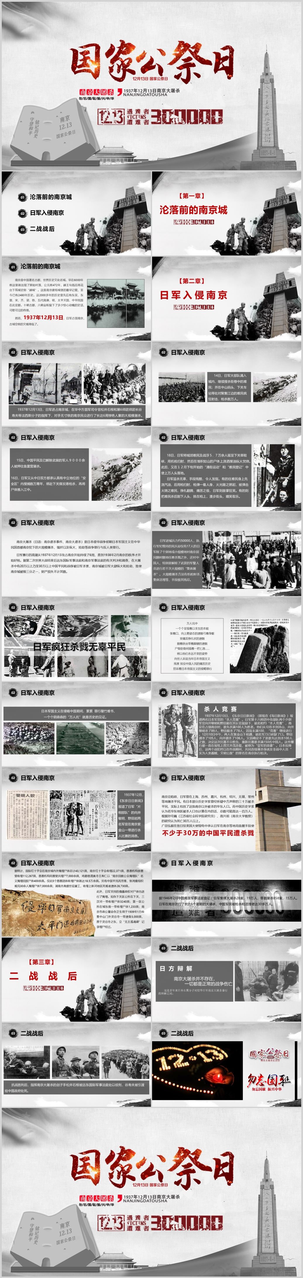 纪念南京大屠杀铭记历史国家公祭日党课PPT模板