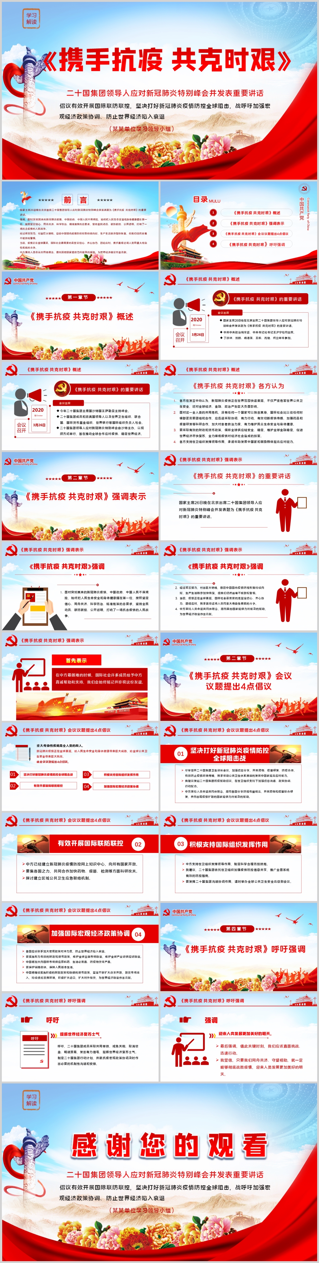 《携手抗疫共克时艰》G20特别峰会PPT模版(内含WORD演讲稿)