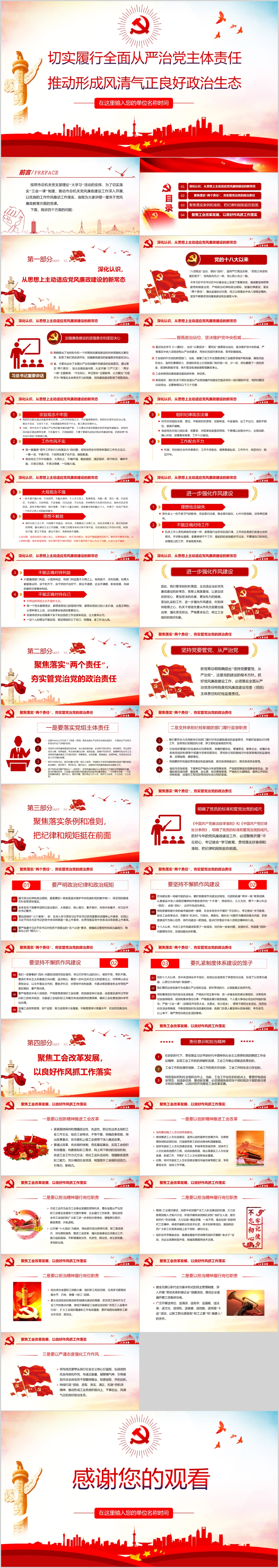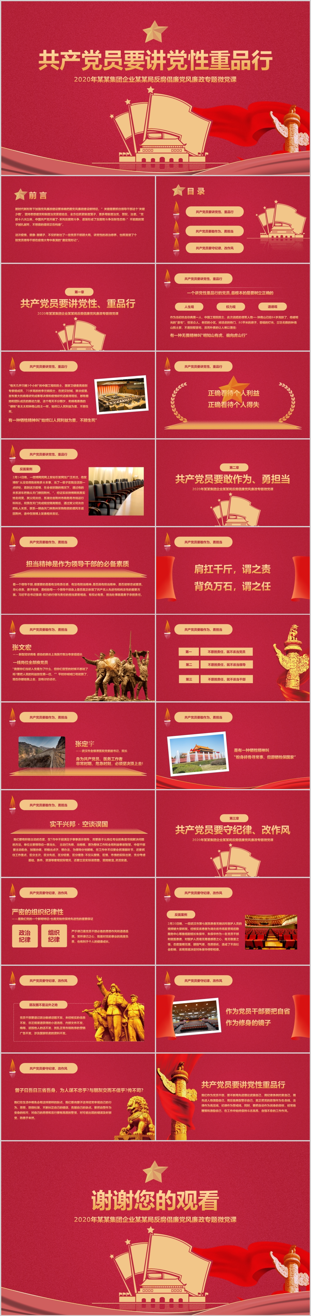 大气党建党风廉政建设文化PPT(内含WORD演讲稿)