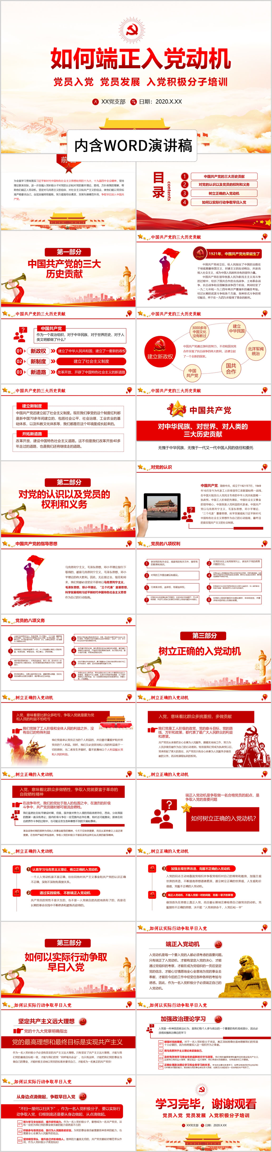 如何端正入党动机入党积极分子预备党员申请入党答辩PPT模板(内含WORD演讲稿