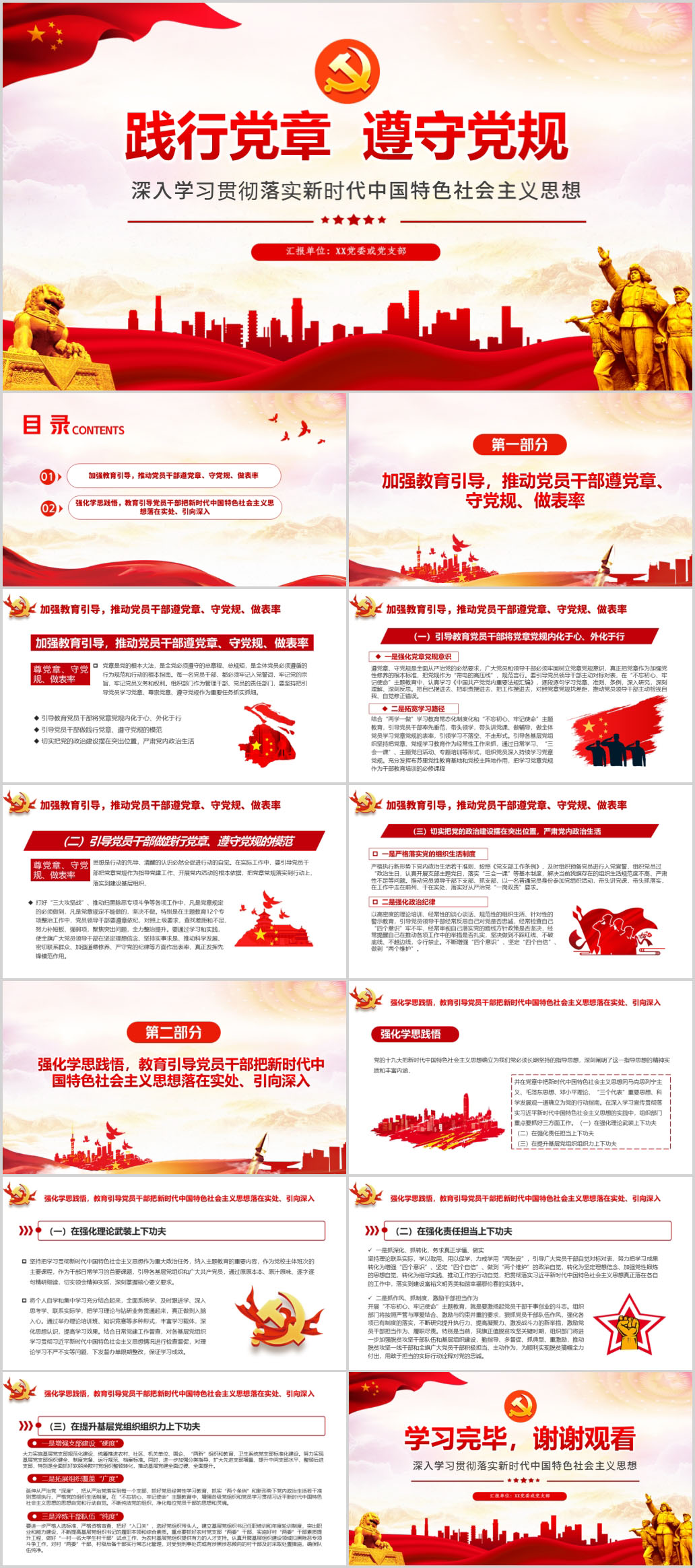 学习解读践行党章遵守党规落实新时代中国特色社会主义思想党课PPT模板