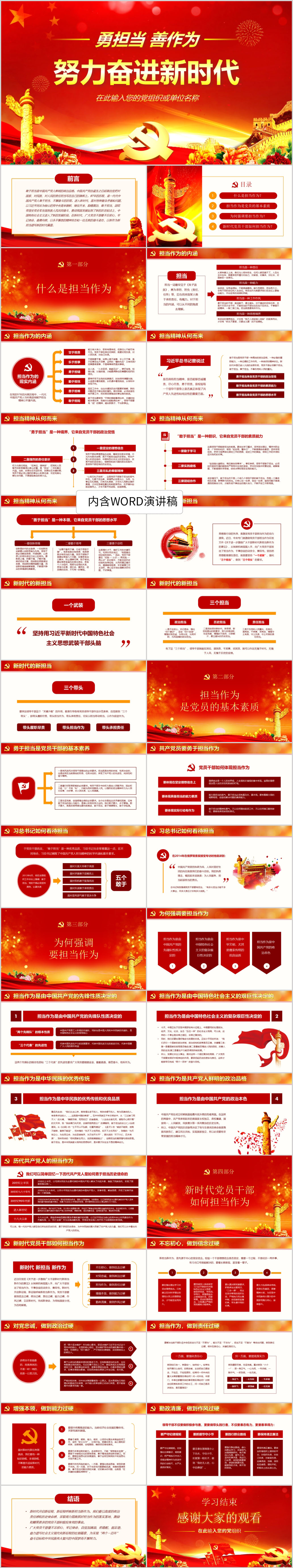 学习新时代党员干部如何担当作为党课PPT模板(内含WORD演讲稿)