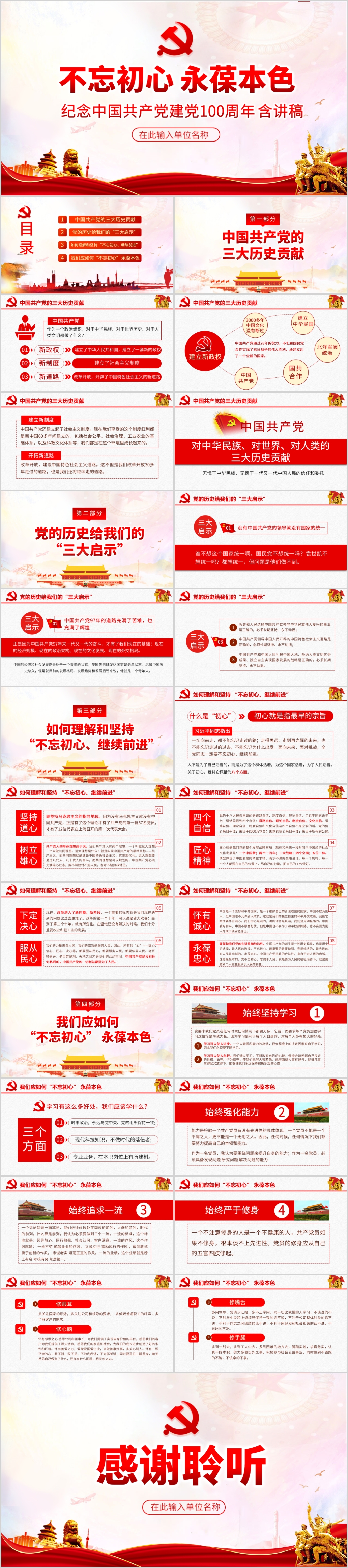 2020年七一建党节党的生日建党99周年PPT(内含WORD演讲稿)
