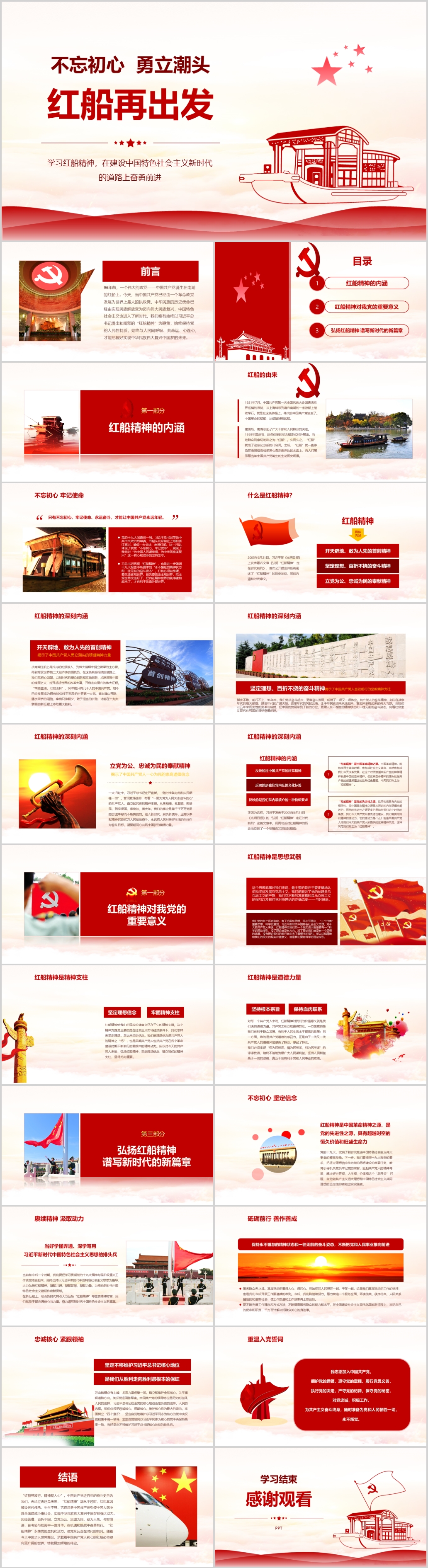 学习不忘初心走在时代前列弘扬红船精神党课PPT模板