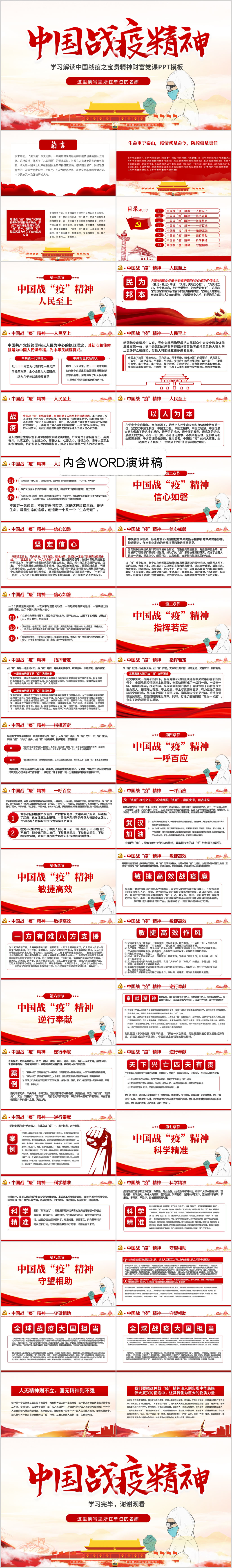 同一堂抗疫精神中国战役精神宝贵的精神财富疫情党课ppt模板(内含WORD演讲稿