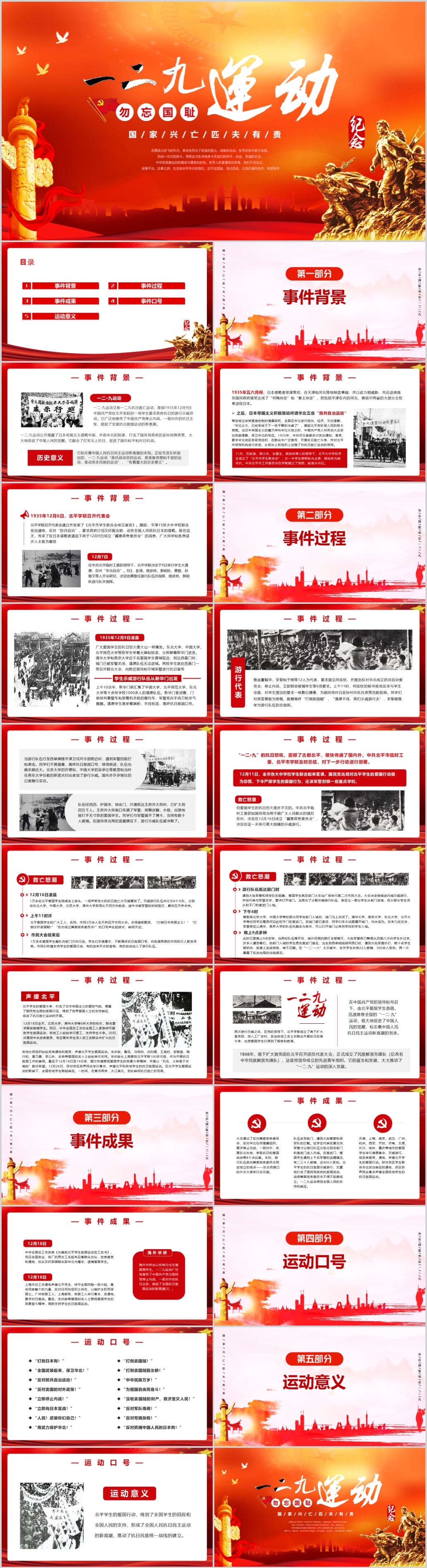 红色大气纪念一二九爱国运动主题班会党课党建PPT模板
