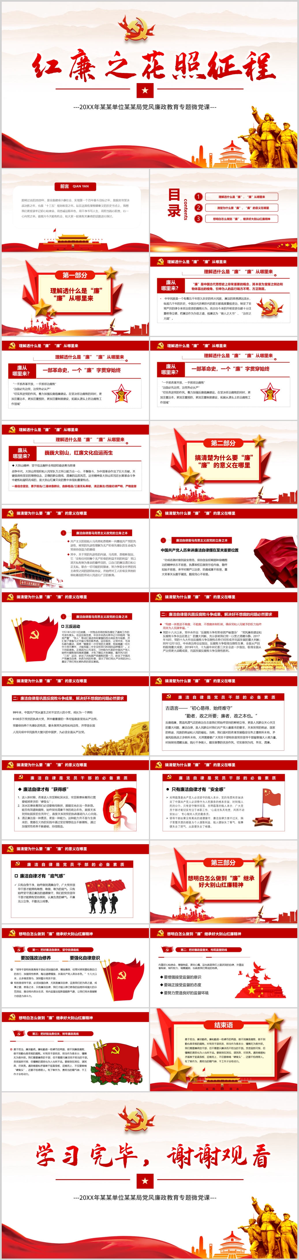 2020年红廉之花照征程党风廉政反腐倡廉从严治党教育党政党课PPT模板