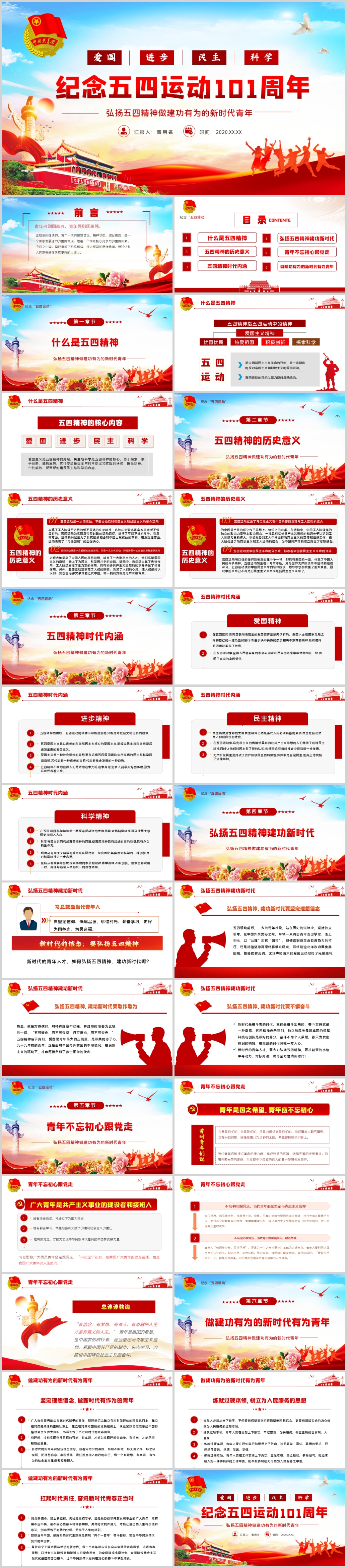 纪念五四运动101周年战疫情PPT(内含WORD演讲稿)