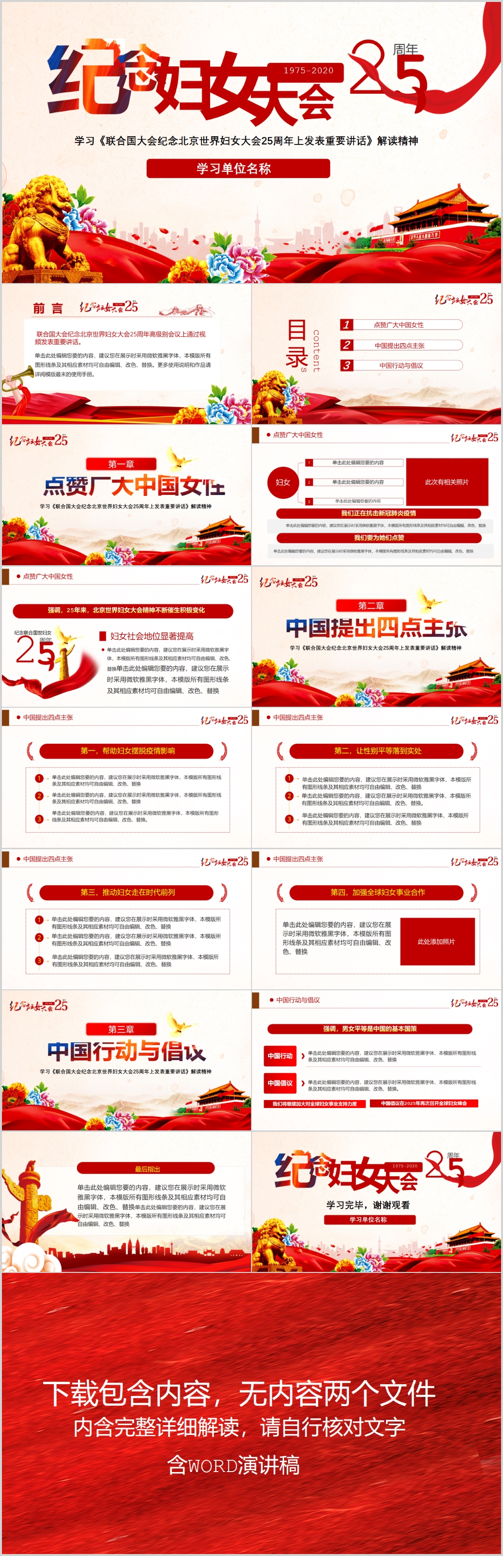纪念北京世界妇女大会25周年党课PPT(内含WORD演讲稿)