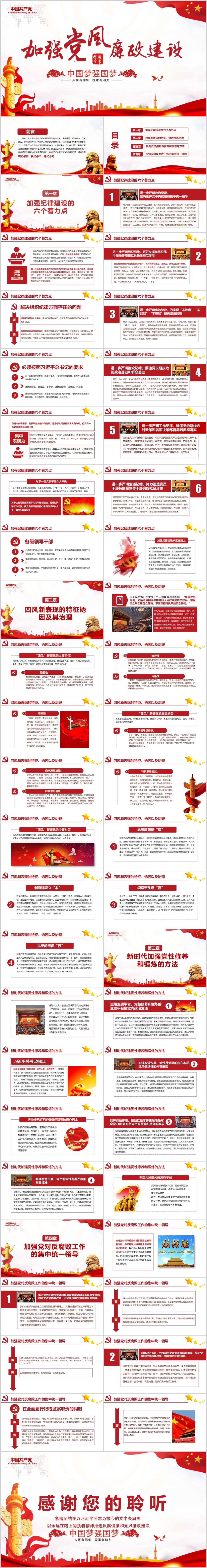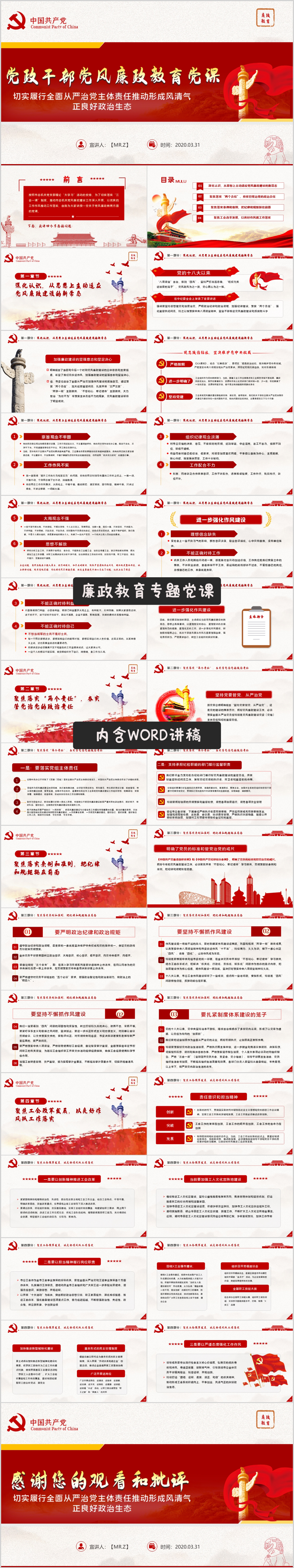 大气党建党风廉政建设文化PPT(内含WORD演讲稿)