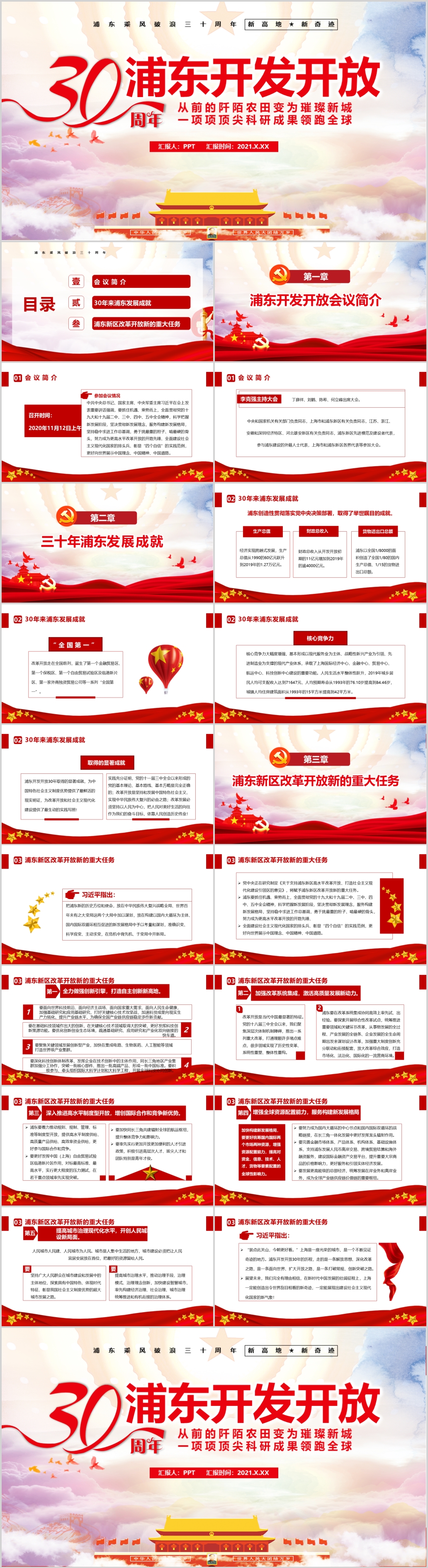 庆祝上海浦东新区开发开放30周年重要讲话PPT模板
