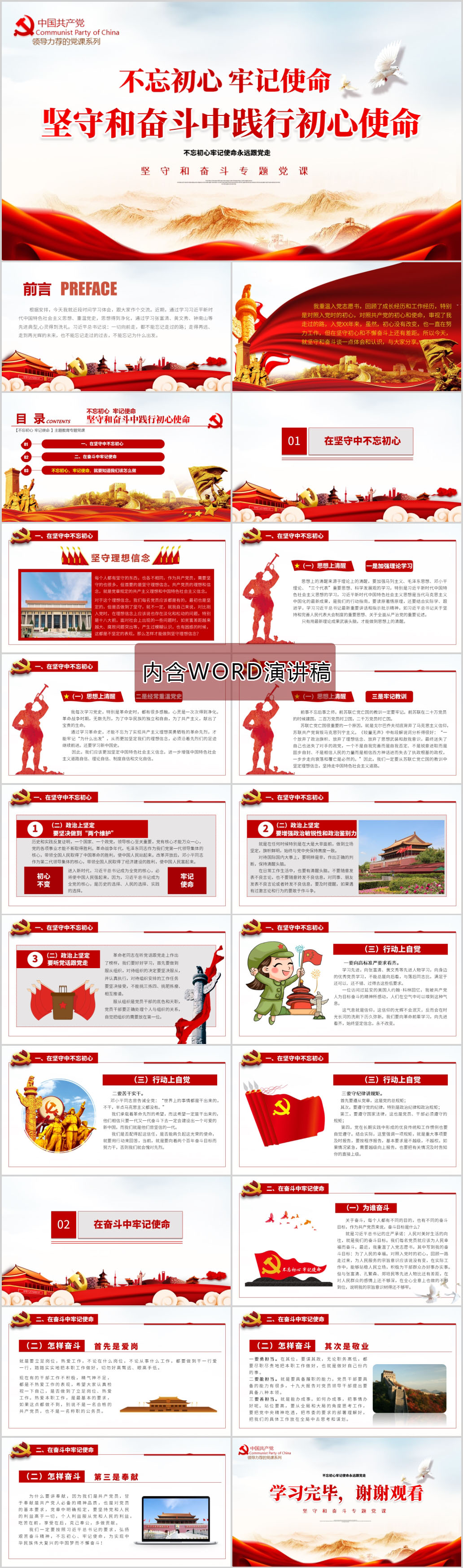 在坚守和奋斗中践行初心使命党课PPT模板(内含WORD演讲稿)