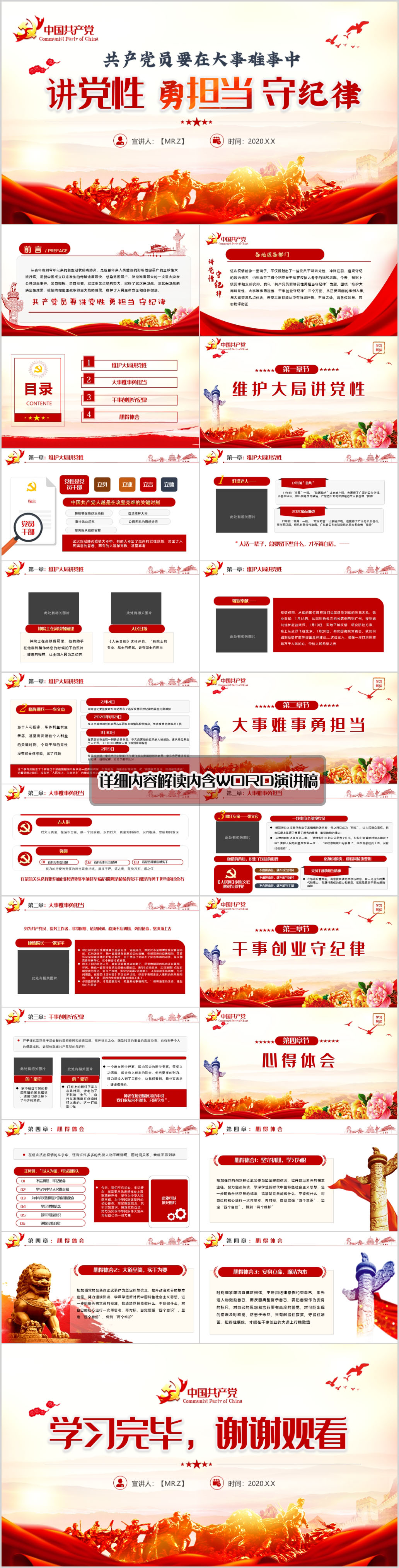 共产党员要讲党性勇担当守纪律党课PPT模板(内含WORD演讲稿)