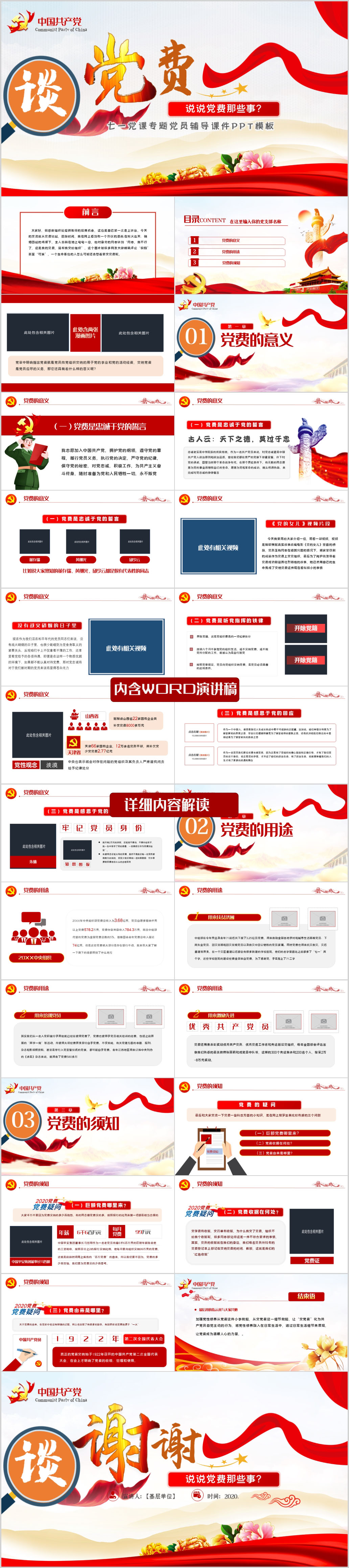 按时交党费做新时代合格党员微党课PPT课件(内含WORD演讲稿)