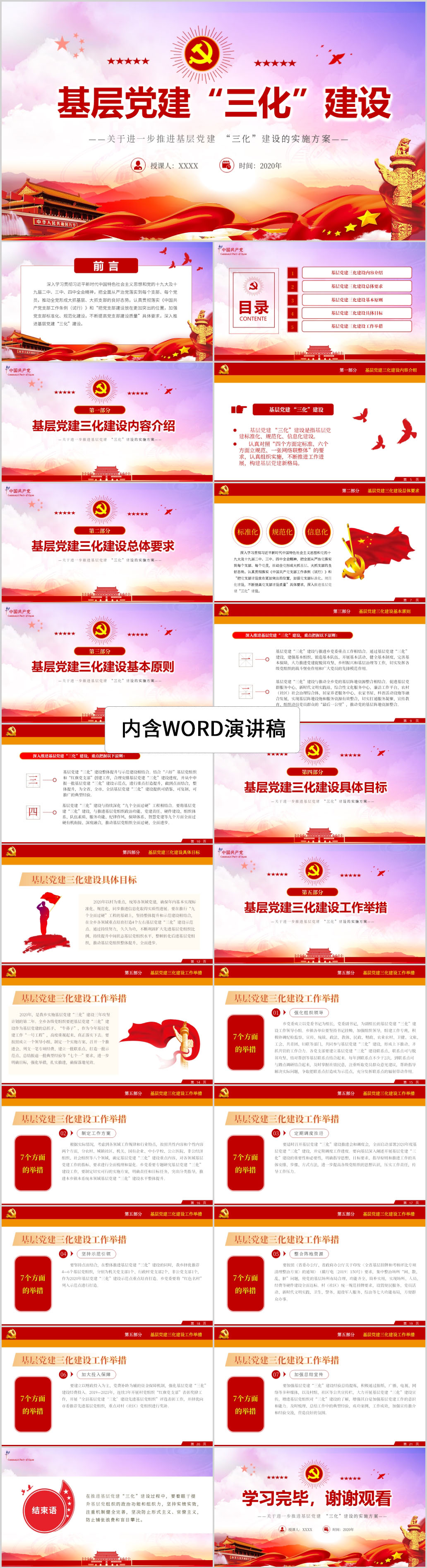 学习基层党建“三化”建设实施方案党建党课PPT模板(内含WORD演讲稿)