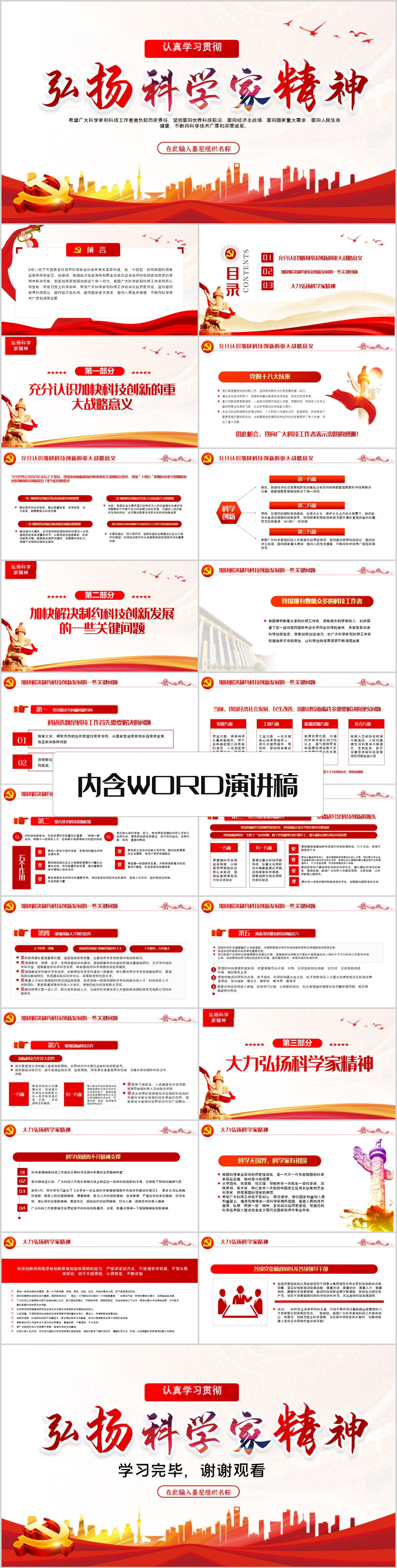 学习在科学家座谈会重要讲话精神党课PPT大力弘扬科学家精神(内含WORD演讲稿
