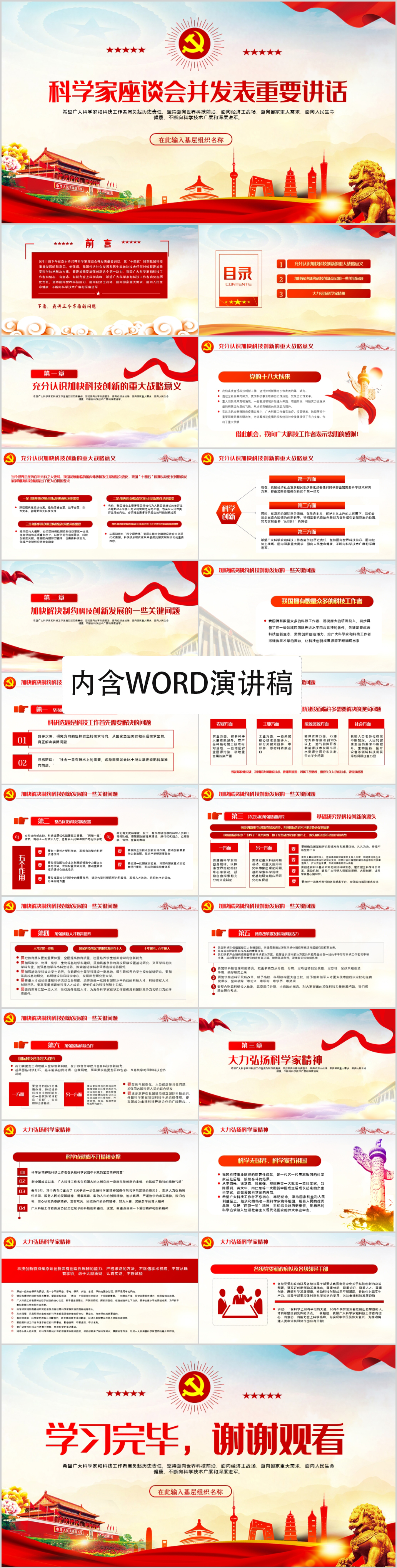 学习在科学家科学家座谈会并发表重要讲话解读PPT模板(内含WORD演讲稿)