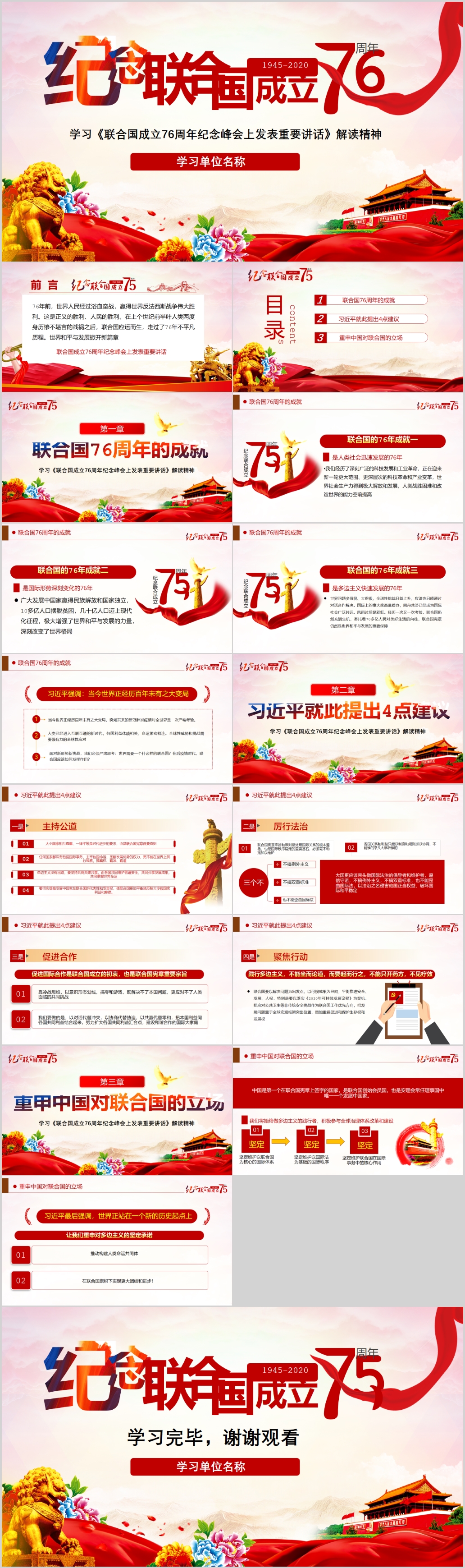 学习在联合国成立76周年纪念峰会上发表重要讲话精神PPT模板(内含WORD演讲稿)