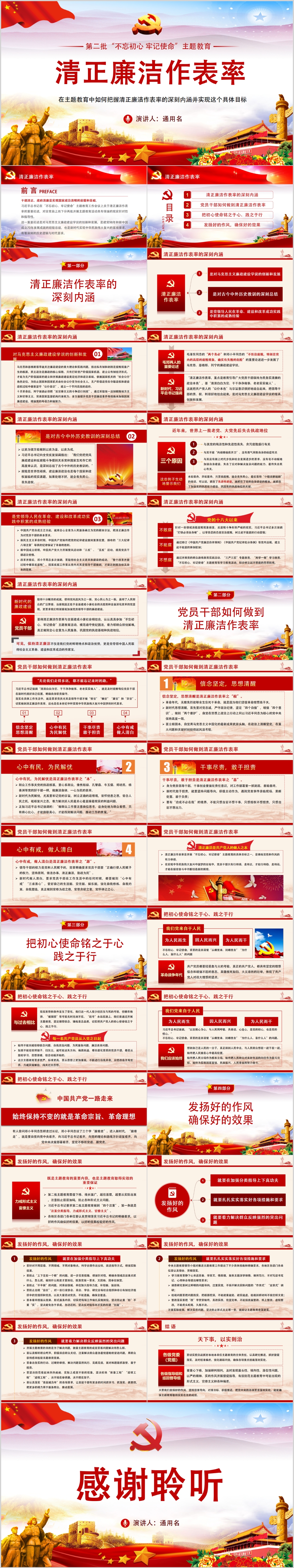 不忘初心牢记使命清正廉洁作表率微党课党建廉政PPT(内含WORD演讲稿)