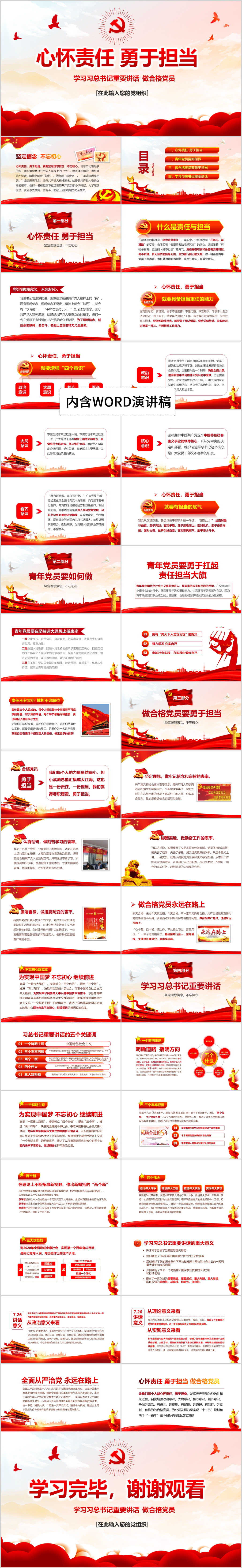 心怀责任勇于担当重要讲话做新时代合格党员党课PPT模板