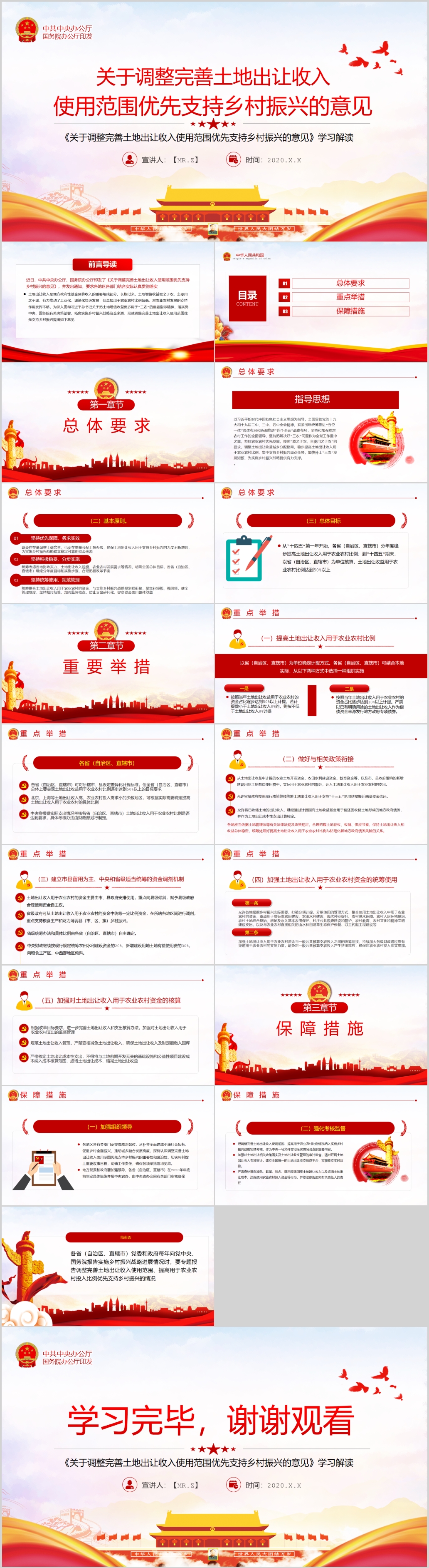 完善土地出让收入使用范围优先支持乡村振兴PPT(内含WORD演讲稿)