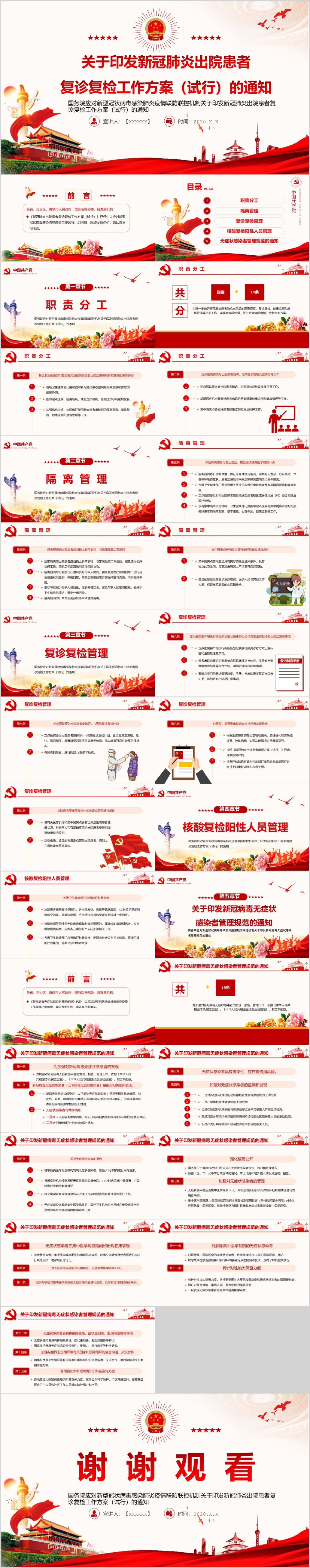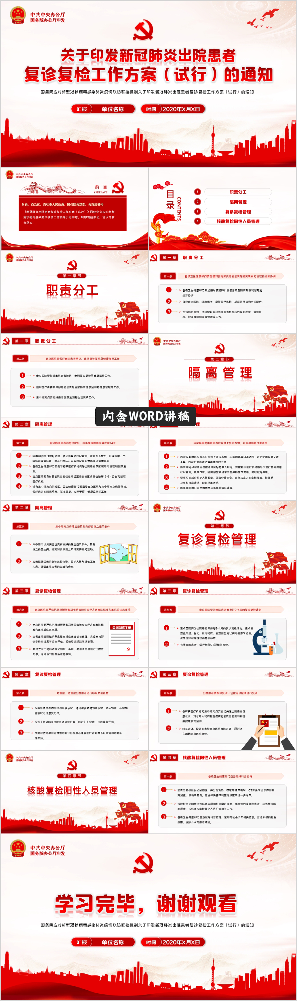 关于印发新冠肺炎出院患者复诊复检工作方案(试行)ppt模板(内含WORD演讲稿
