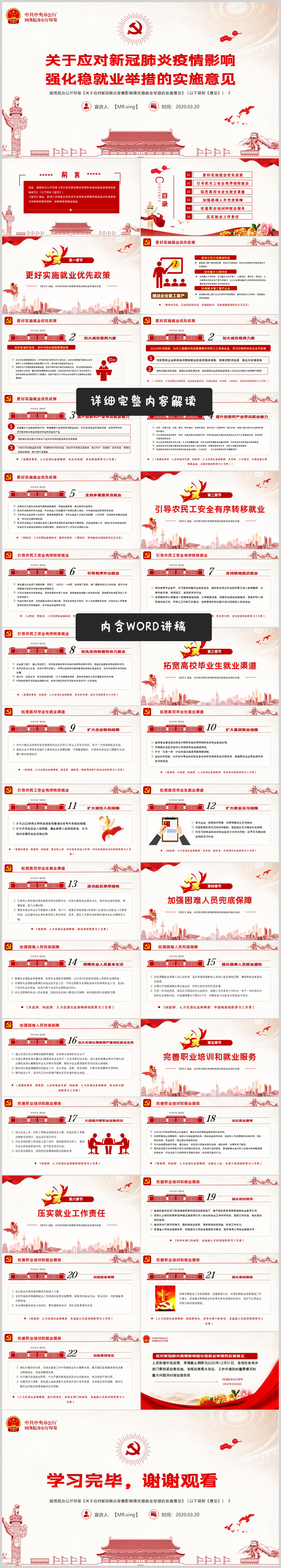 关于应对新冠肺炎疫情影响强化稳就业举措的实施意见PPT(内含WORD演讲稿)