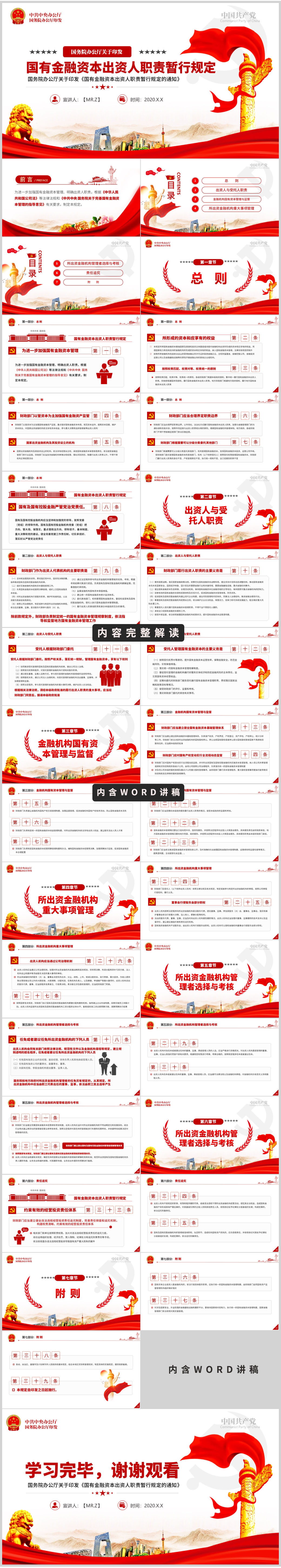 国有金融资本出资人职责暂行规定的通知ppt模板(内含WORD演讲稿)