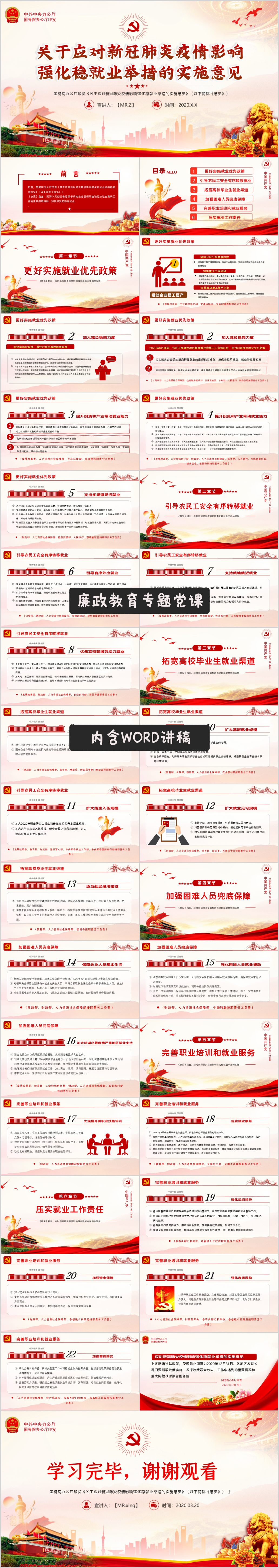 关于应对新冠肺炎疫情影响强化稳就业举措的实施意见ppt(内含WORD演讲稿)